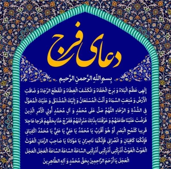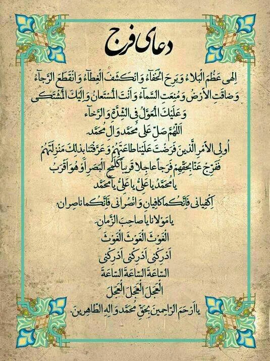 یَا مَوْلانا یَا صاحِبَ الزَّمانِ، الْغَوْثَ الْغَوْثَ الْغَوْثَ، أَدْرِکْنِی أَدْرِکْنِی أَدْرِکْنِی، السَّاعَهَ السَّاعَهَ السّاعَهَ، الْعَجَلَ الْعَجَلَ الْعَجَلَ، یَا أَرْحَمَ الرَّاحِمِینَ بِحَقِّ مُحَمَّدٍ وَآلِهِ الطَّاهِرِینَ.